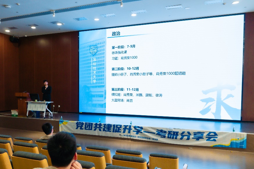 为进一步发挥学生党员先锋模范作用,帮助深j9体育官网本科同学了解考研相关信息和备考技巧,由九游在线登录官网研究生院党总支的党员志愿者组织的“党建共建促升学——考研经验分享会”专题讲座,于2024年11月27日下午14点,在C1大数据互联网学院教学楼105阶梯教室举行。